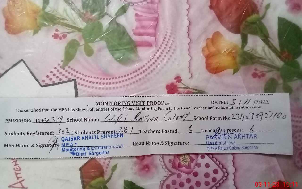 | EMIS Code: 38420579 | Name of School: GGPS BAJWA COLONY | |||