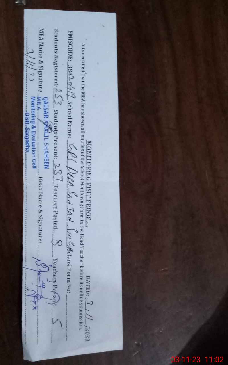 | EMIS Code: 38420419 | Name of School: GPS DERA SUNJAN SINGH | |||