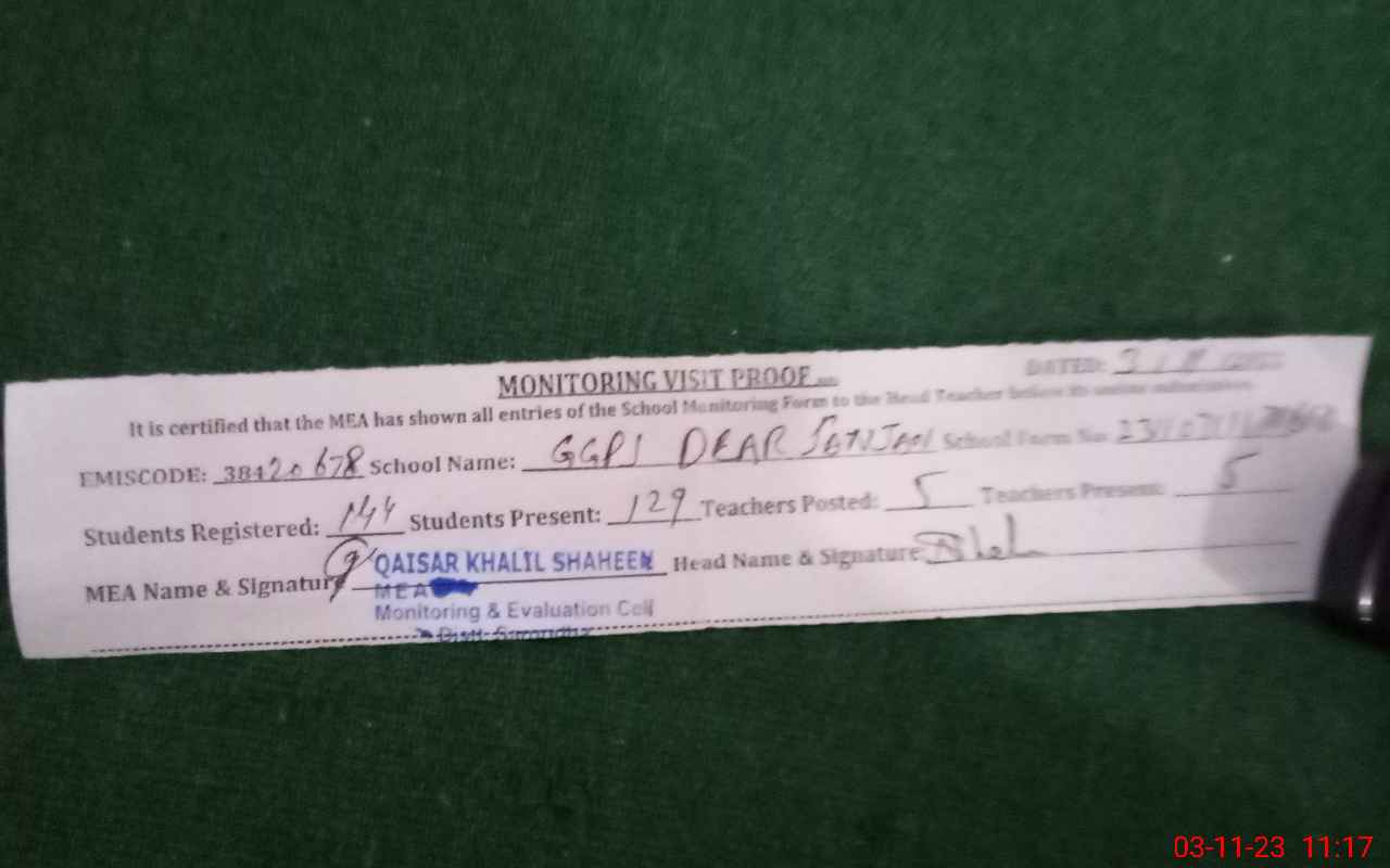 | EMIS Code: 38420678 | Name of School: GGPS DERA SUNJAN SINGH | |||