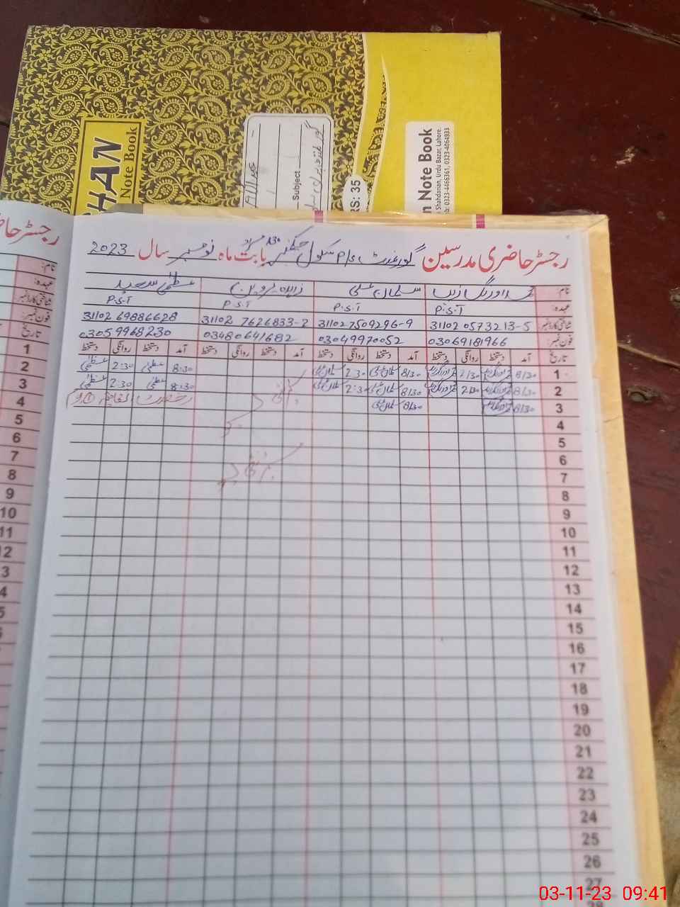 | Name: Sa**** Al**** Designation: (School Headmaster's/Headmistress's) PST Phone/Cell Number: 03**** |