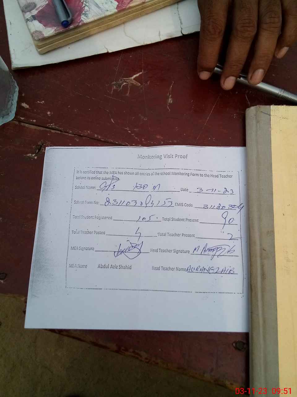 | EMIS Code: 31120304 | Name of School: GPS CHAK NO 130/M | |||