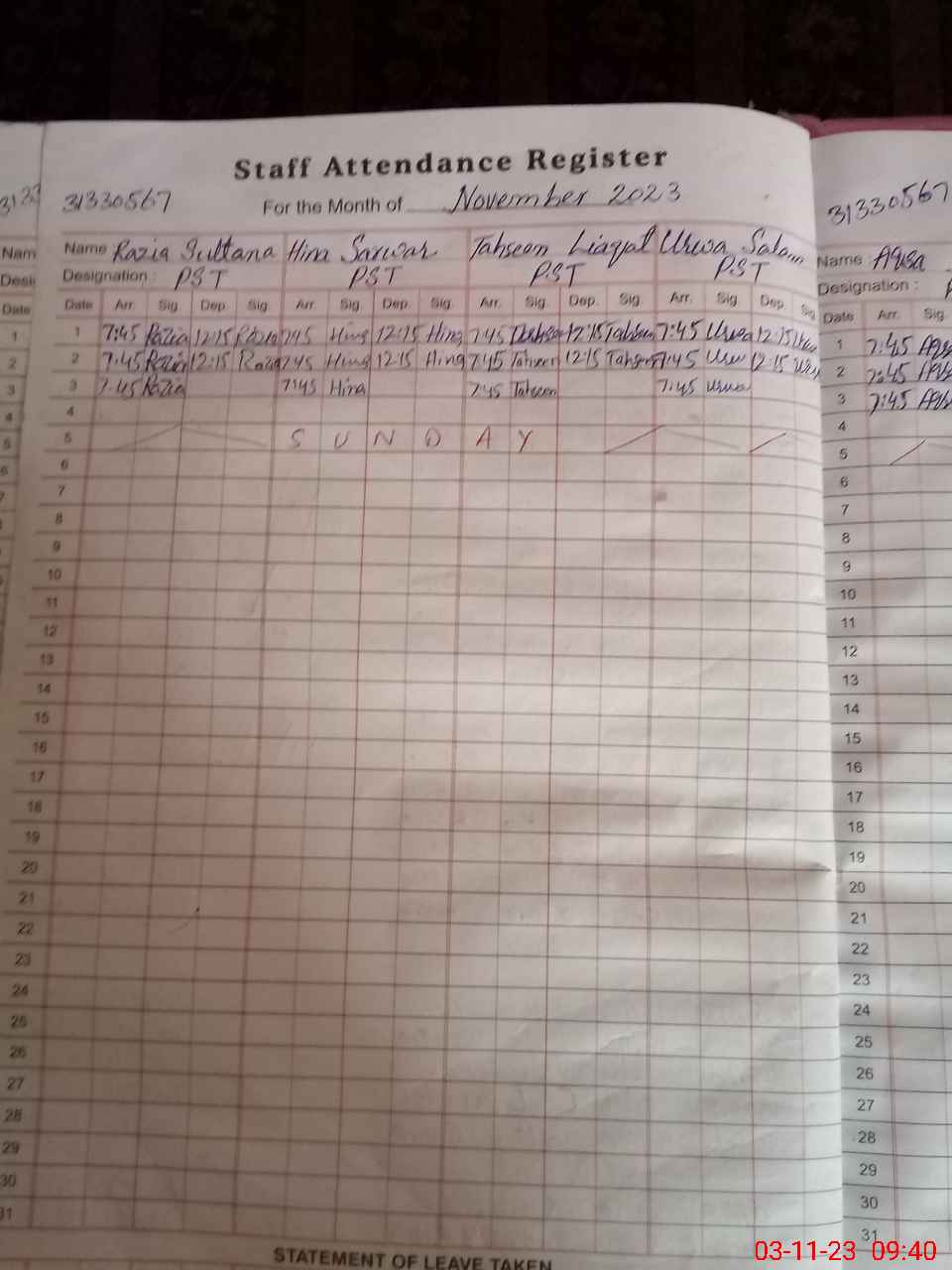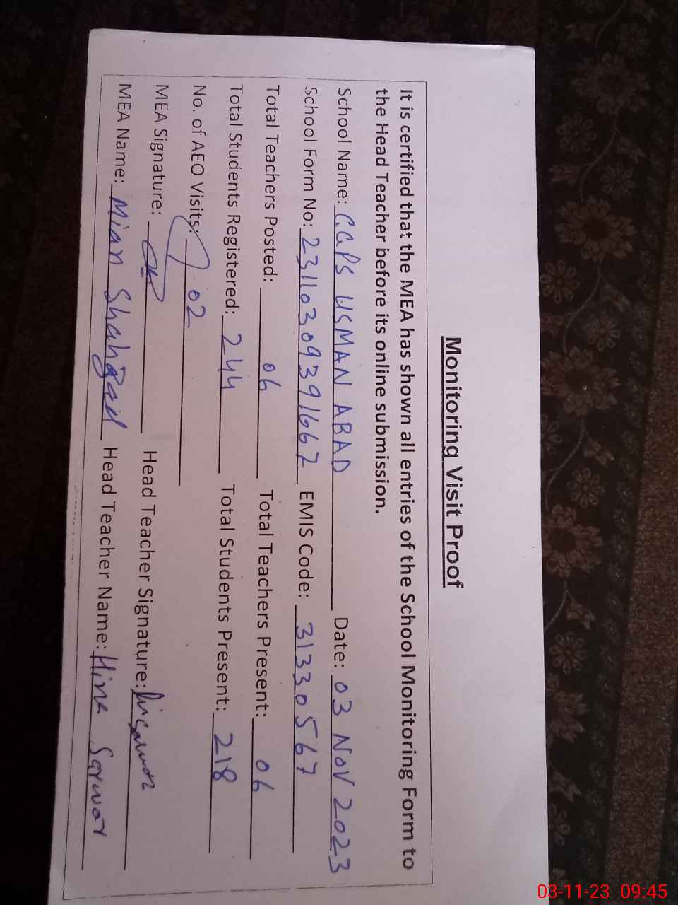 | Name: Hi**** Sa**** Designation: (School Headmaster's/Headmistress's) PST Phone/Cell Number: 03**** |