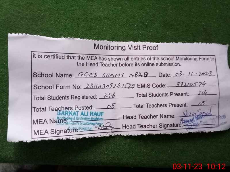 | EMIS Code: 39210574 | Name of School: GGES SHAMS ABAD | |||