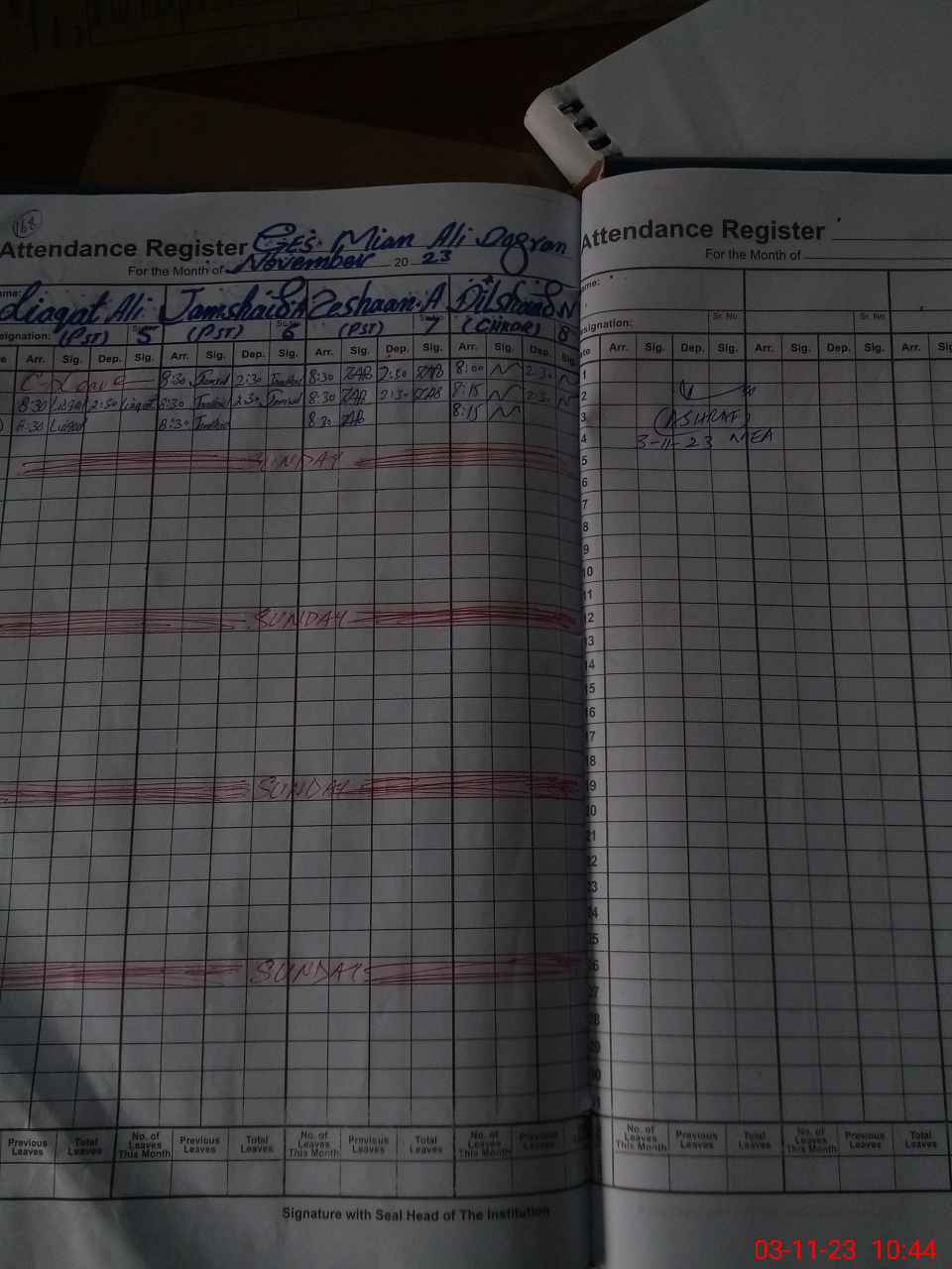 | CNIC | Full Name | Designation | R/C | Absence During Last Calender Month |