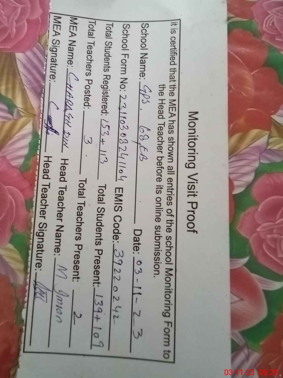 | EMIS Code: 39220242 | Name of School: GPS 68 EB | |||