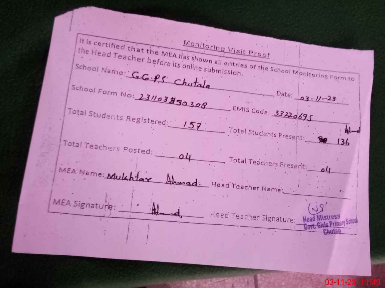 | EMIS Code: 33220695 | Name of School: GGPS CHUTALA | |||