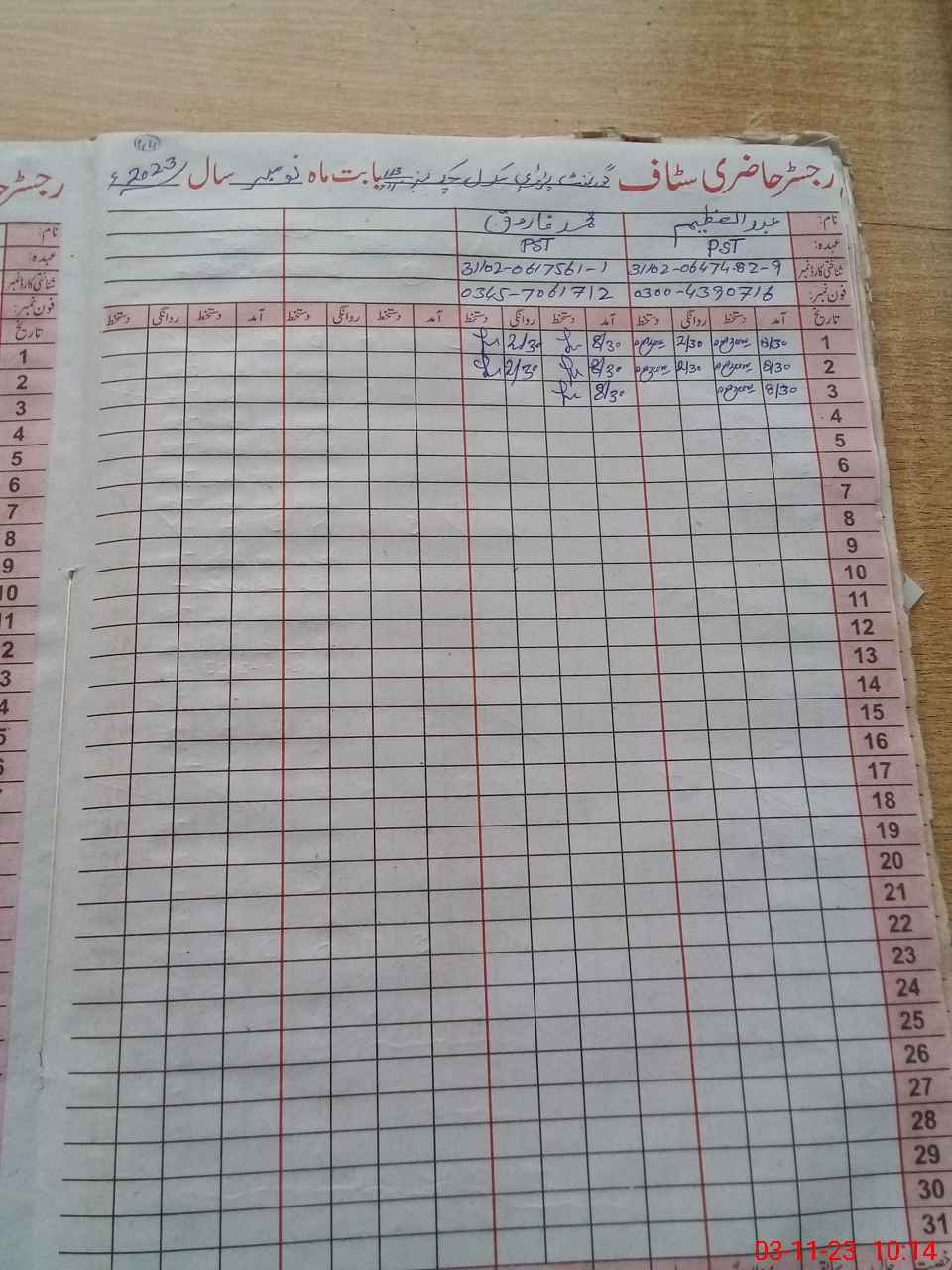 | Name: AB**** AZ**** Designation: (School Headmaster's/Headmistress's) PST Phone/Cell Number: 03**** |