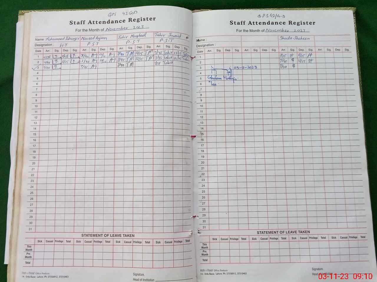 | Name: MJA**** Designation: (School Headmaster's/Headmistress's) PTC/JV Phone/Cell Number: 03**** |