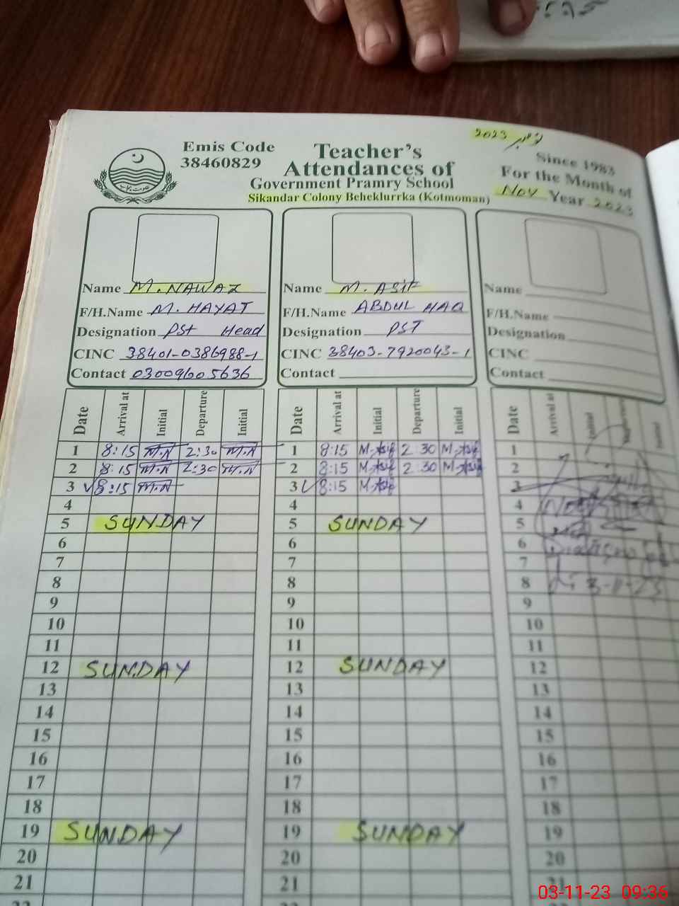 | Name: MU**** NA**** Designation: (School Headmaster's/Headmistress's) PST Phone/Cell Number: 03**** |