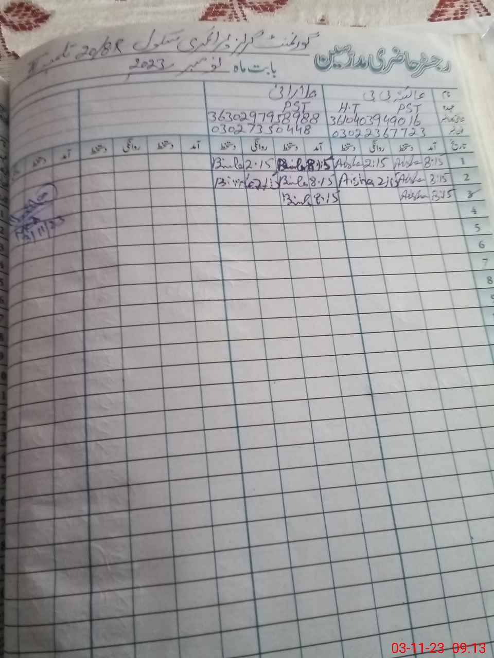 | Name: Ay**** Bi**** Designation: (School Headmaster's/Headmistress's) PST Phone/Cell Number: 03**** |
