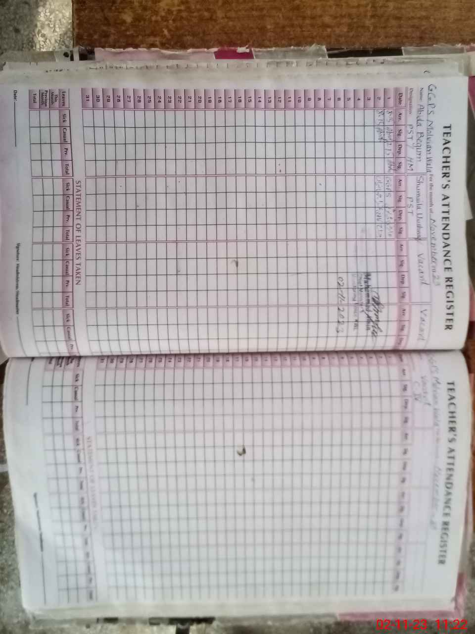 | Name: Ab**** Be**** Designation: (School Headmaster's/Headmistress's) PST Phone/Cell Number: 03**** |
