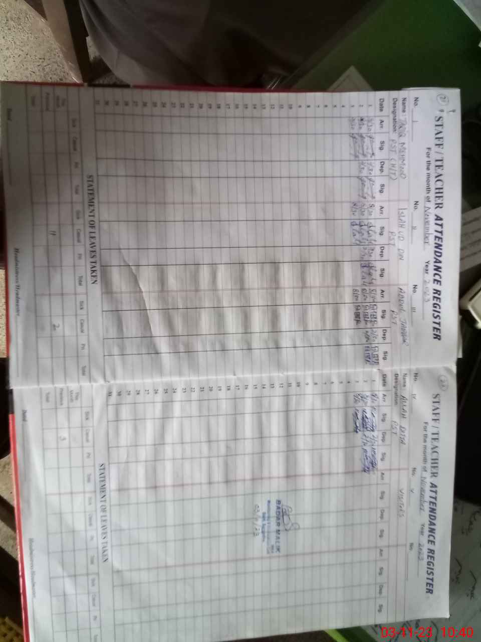 | Name: TA**** MA**** Designation: (School Headmaster's/Headmistress's) PST Phone/Cell Number: 03**** |