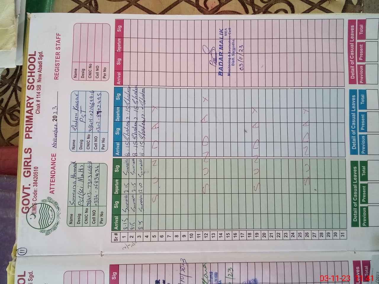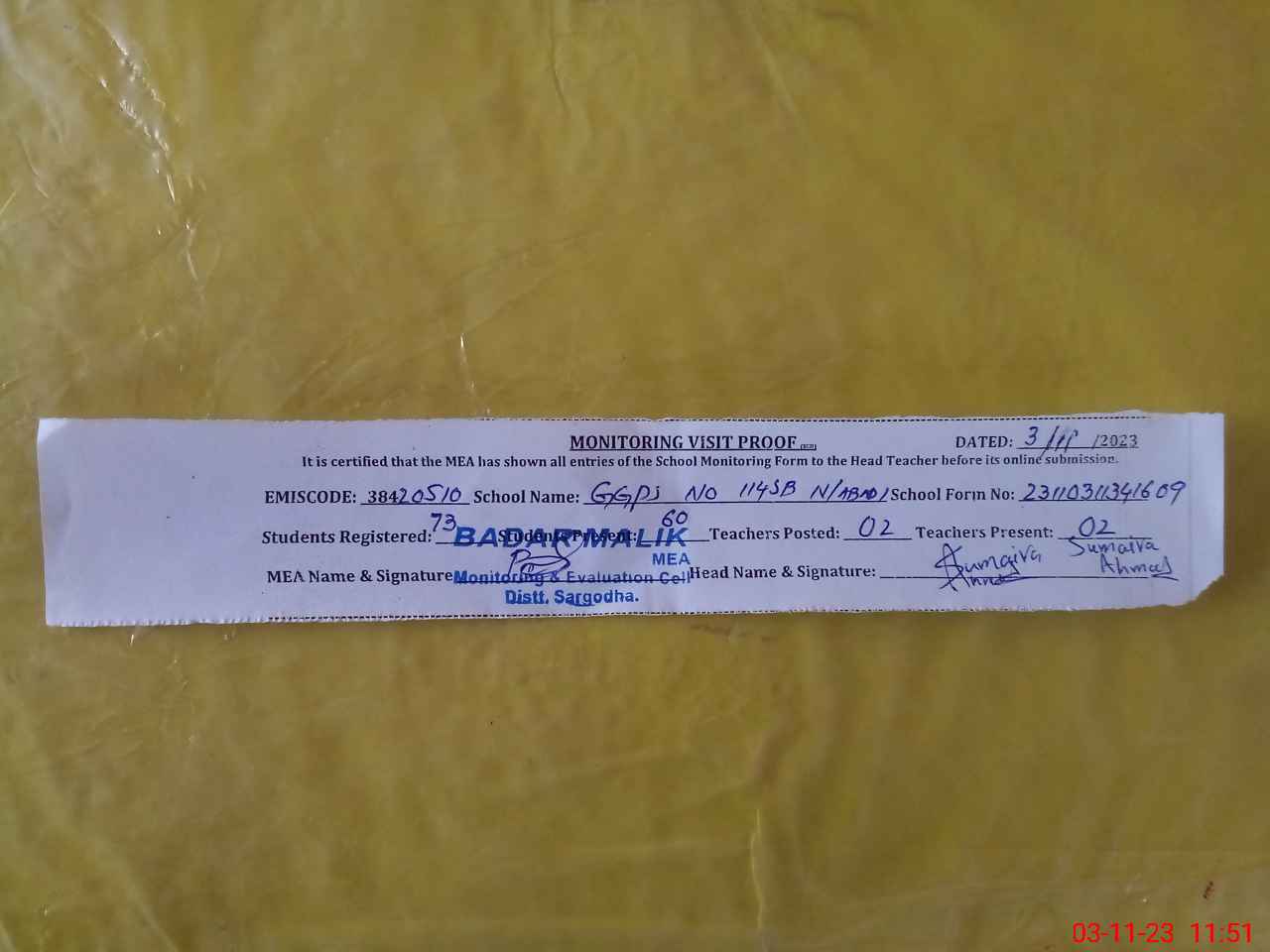 | EMIS Code: 38420510 | Name of School: GGPS CHAK NO.114 SB NEW ABADI | |||