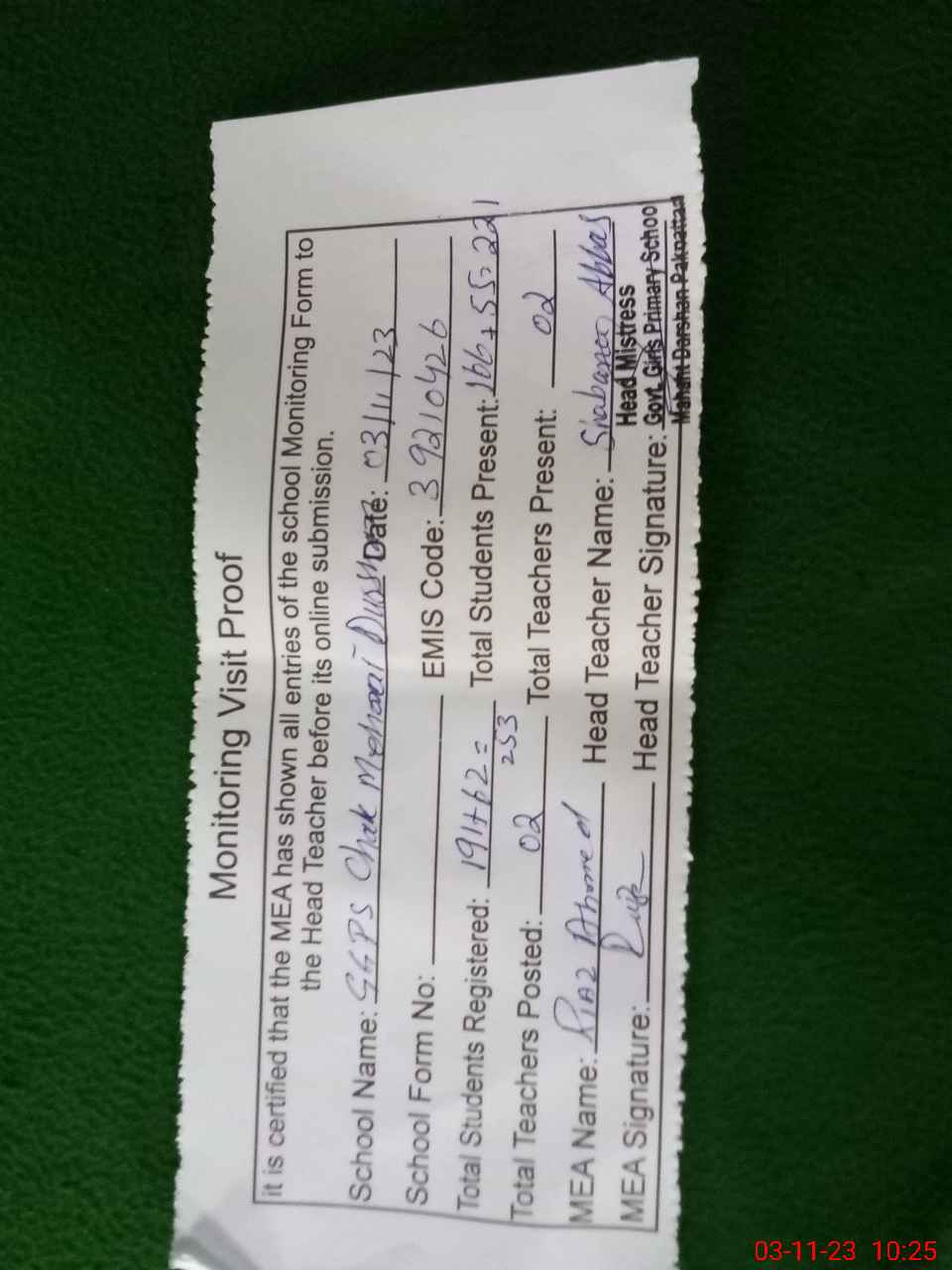 | EMIS Code: 39210426 | Name of School: GGPS CHAK MEHNAT DURSHAN | |||