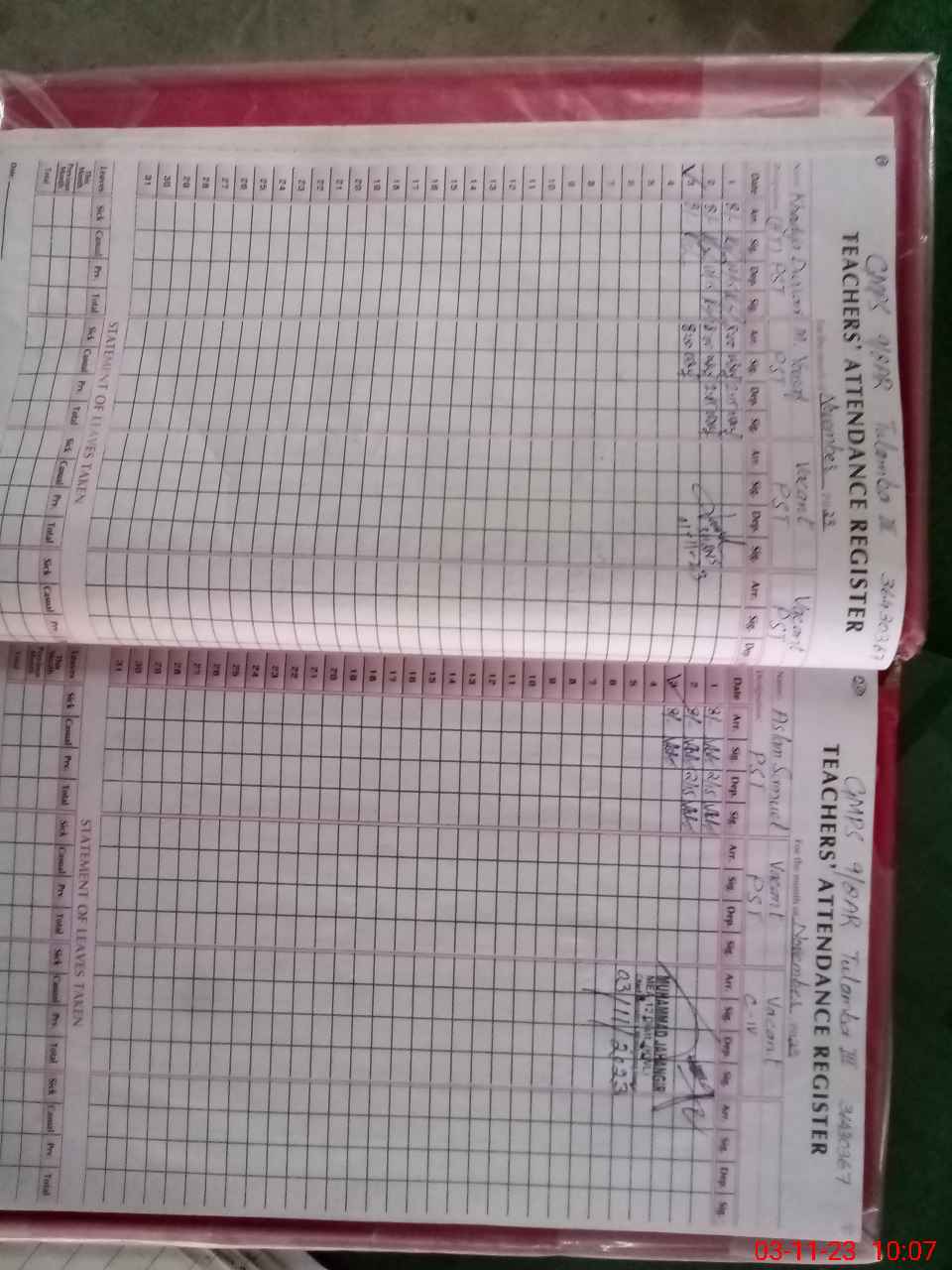 | Name: KH**** DU**** Designation: (School Headmaster's/Headmistress's) PST/PTC/JV Phone/Cell Number: 03**** |