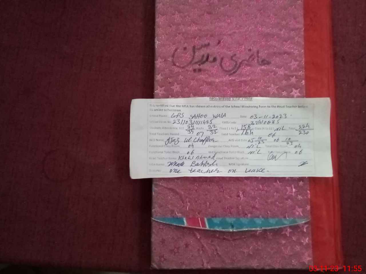 | Attendance Register | Head Teacher | MEA with School | Visit Proof |