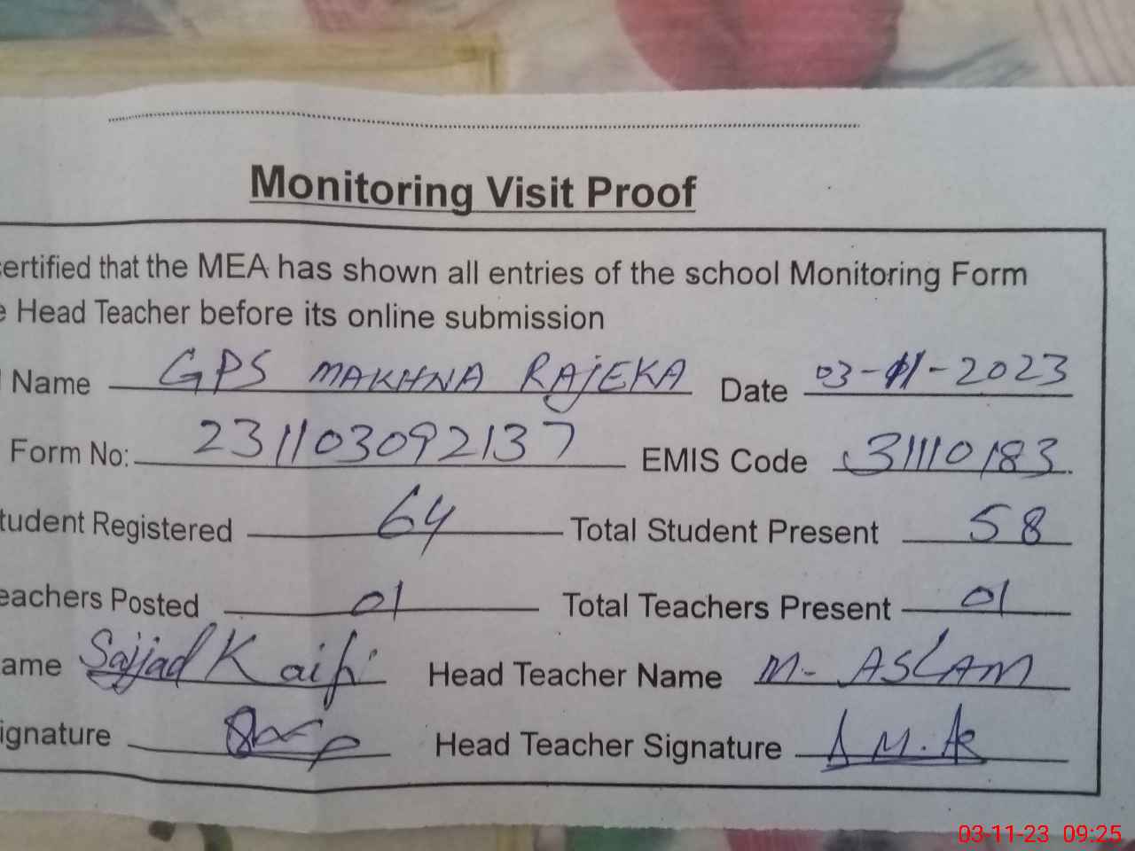 | EMIS Code: 31110183 | Name of School: GPS MAKHANA RAJEKA | |||