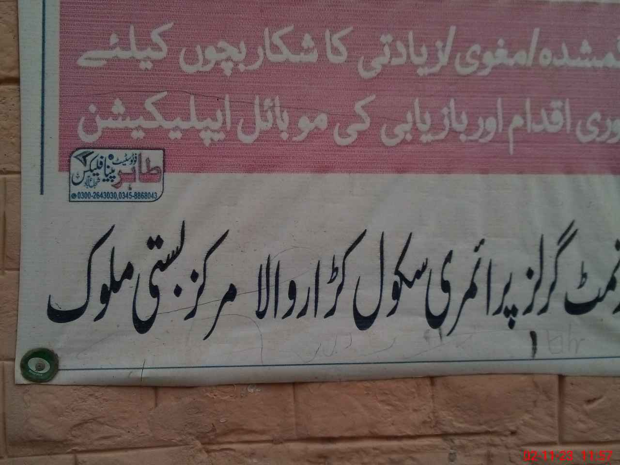 | Name: Me**** Ra**** Designation: (School Headmaster's/Headmistress's) Headmistress Phone/Cell Number: 03**** |