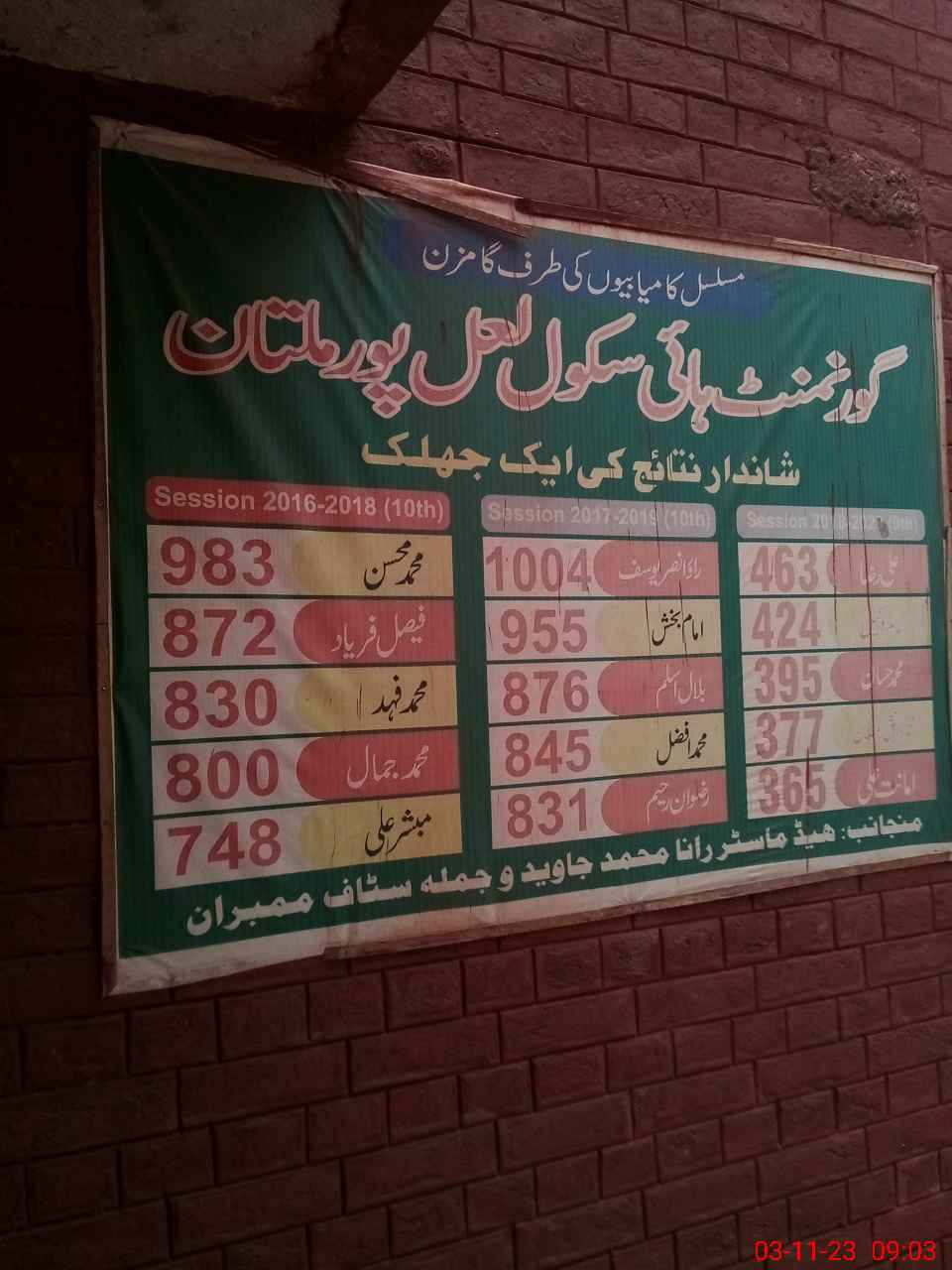 | District: MULTAN | Tehsil: MULTAN SADAR | Markaz: SECONDARY-WING | Level: High | |