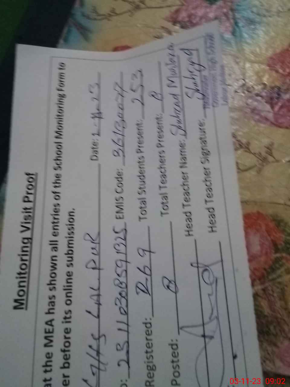 | Name: Sh**** Mu**** Designation: (School Headmaster's/Headmistress's) Incharg Phone/Cell Number: 03**** |