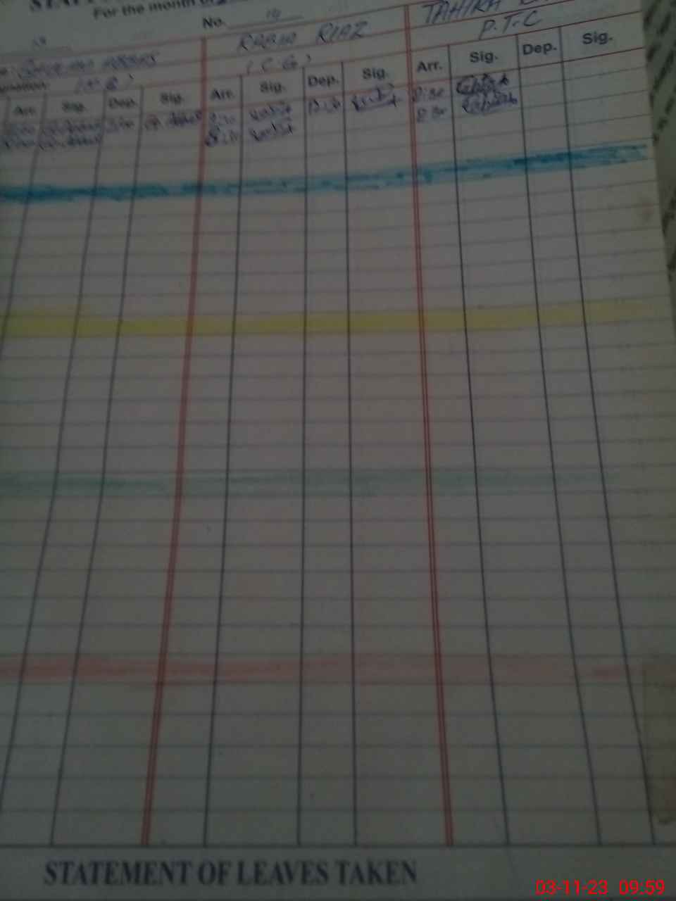 | CNIC | Full Name | Designation | R/C | Absence During Last Calender Month |