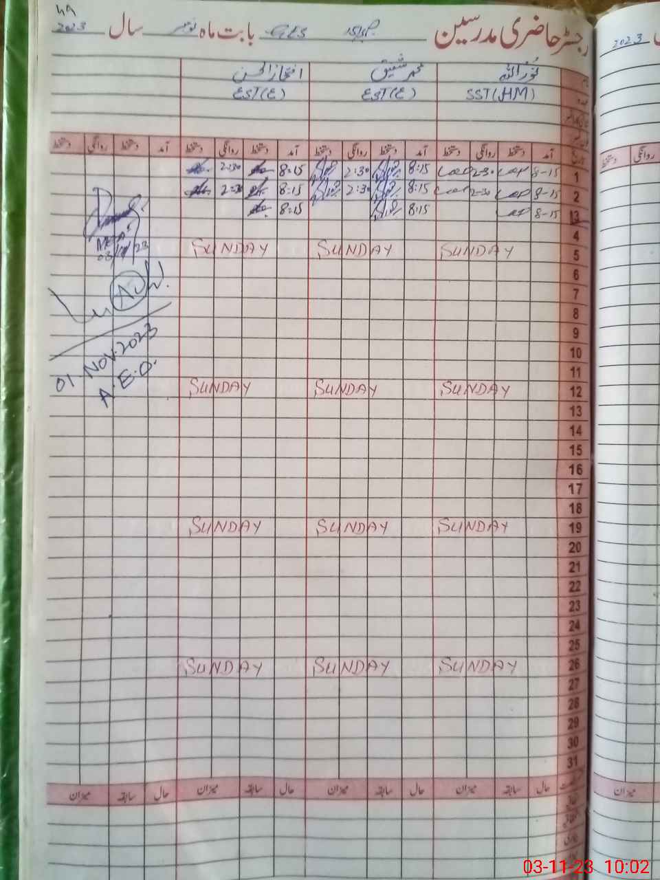 | CNIC | Full Name | Designation | R/C | Absence During Last Calender Month |