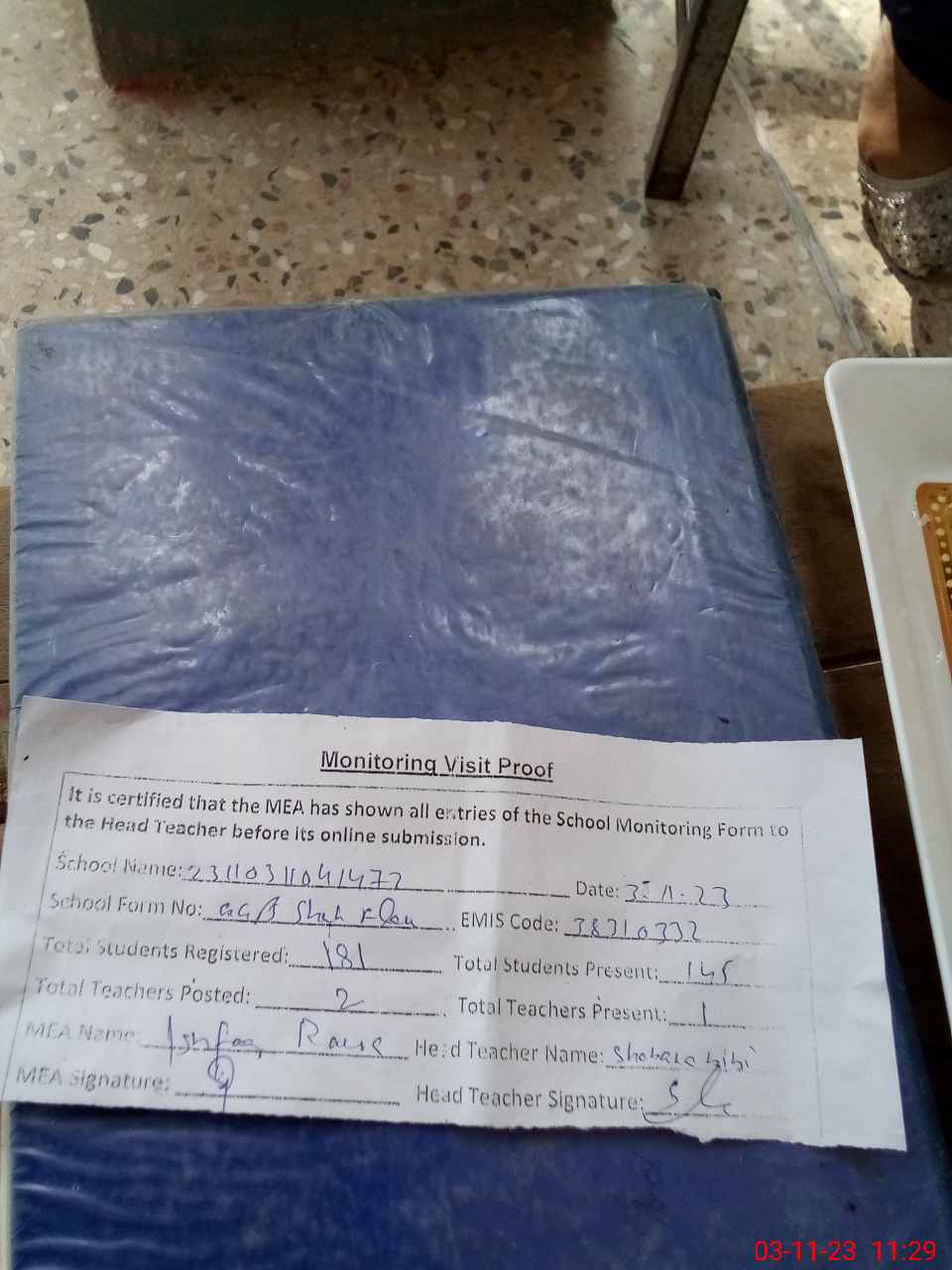 | EMIS Code: 38310332 | Name of School: GGPS SHAH ALAM WALA | |||