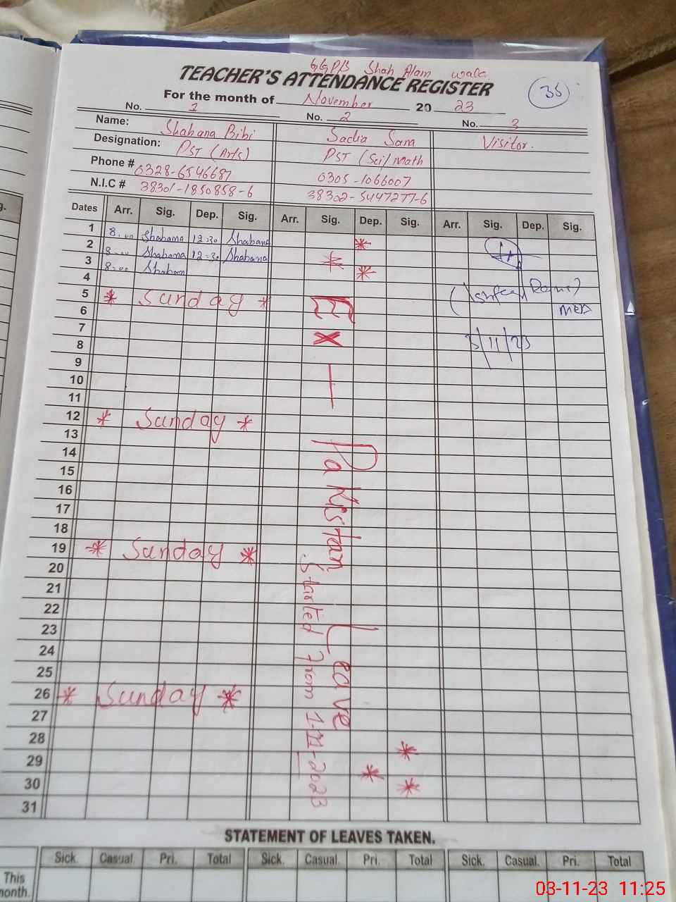 | Name: SH**** BI**** Designation: (School Headmaster's/Headmistress's) PST/PTC/JV Phone/Cell Number: 03**** |