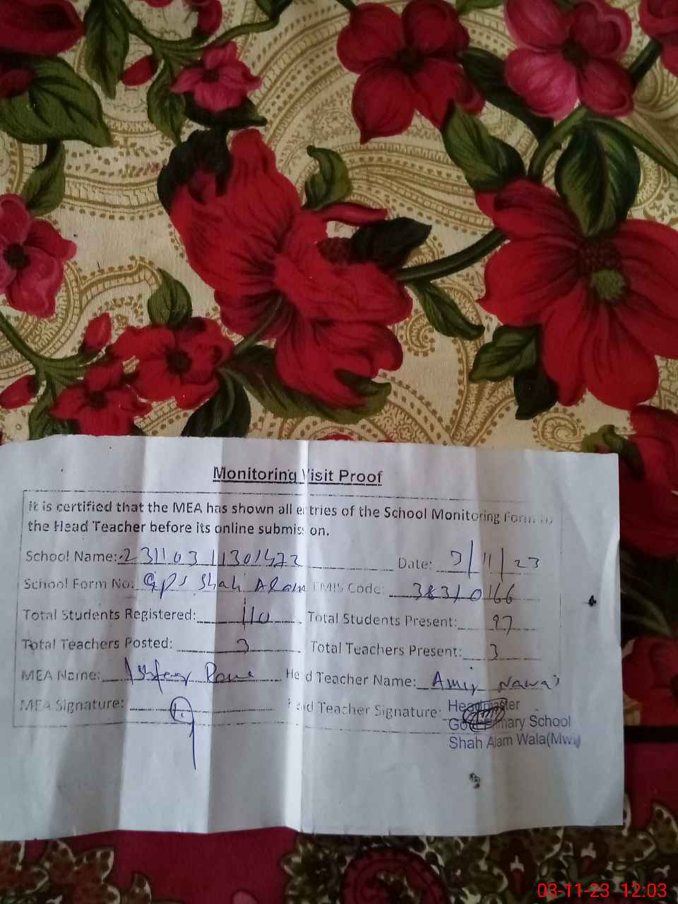 | EMIS Code: 38310166 | Name of School: GPS SHAH ALAM WALA | |||
