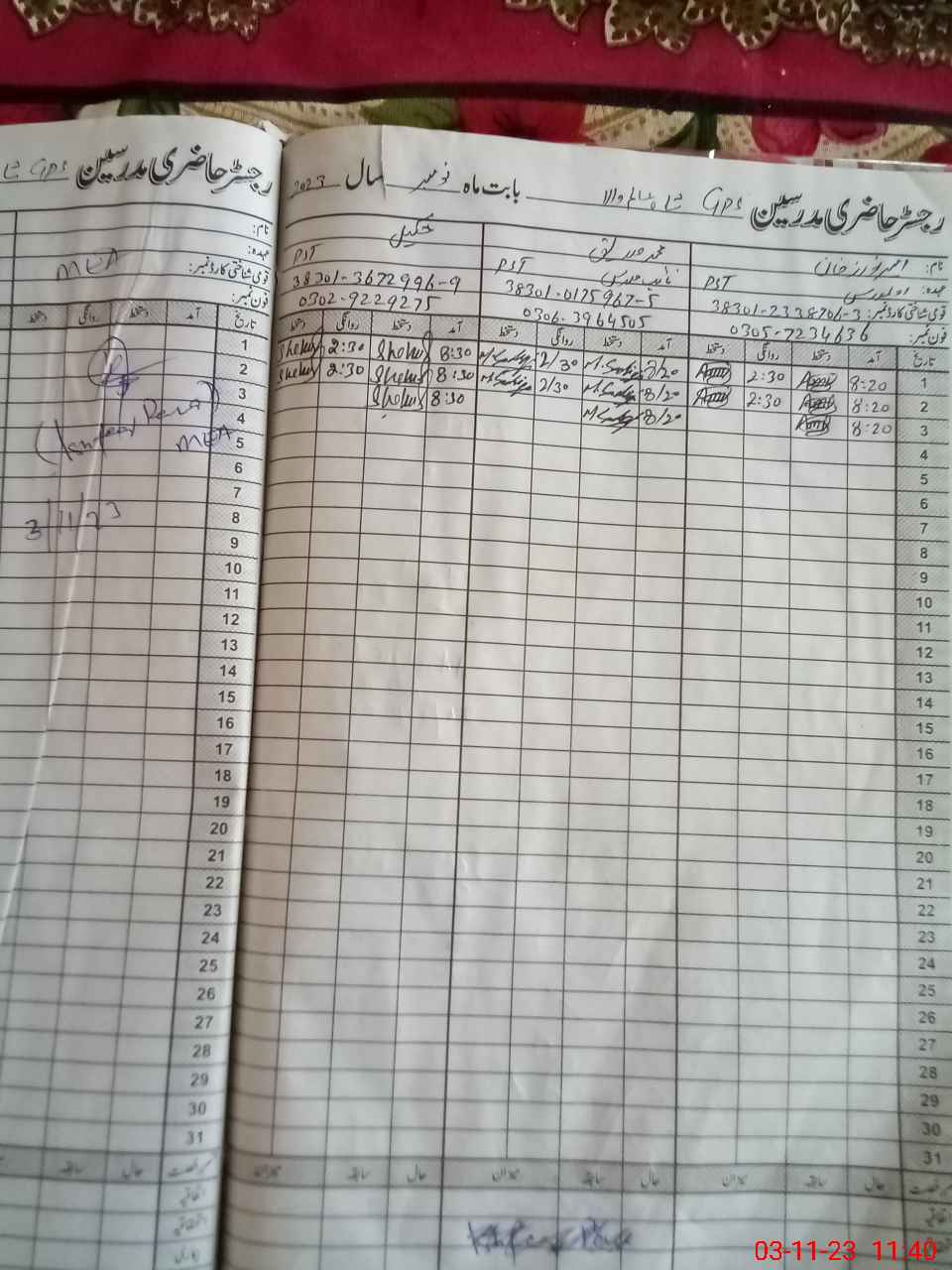 | Name: Am**** Na**** Kh**** Designation: (School Headmaster's/Headmistress's) PST/PTC/JV Phone/Cell Number: 03**** |