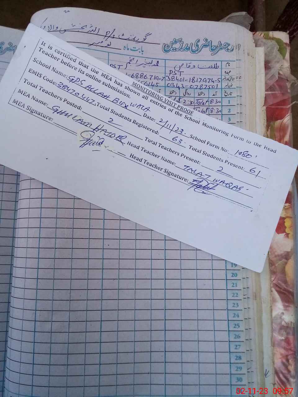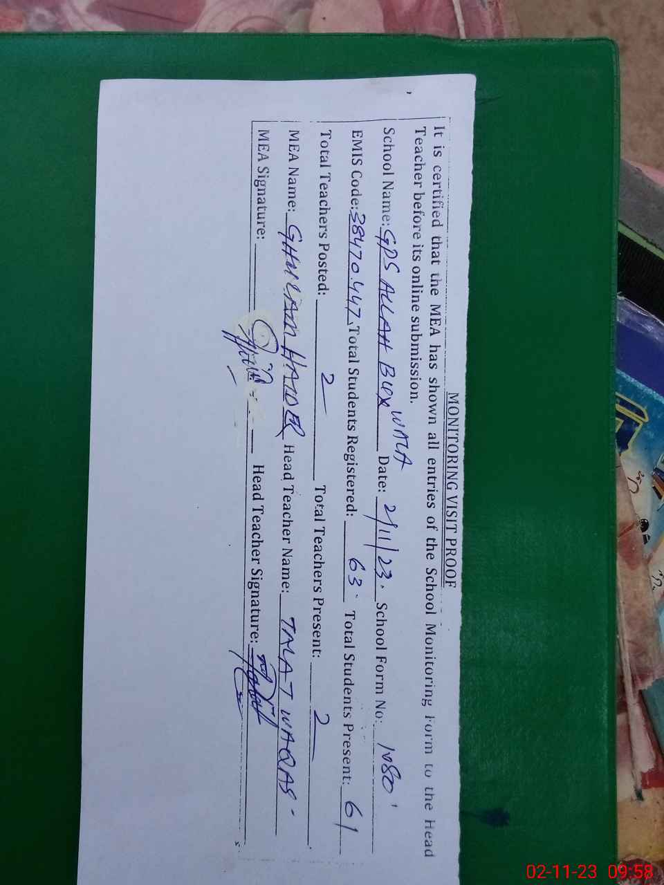 | EMIS Code: 38470447 | Name of School: GPS ALLAH BAKHSH WALA | |||