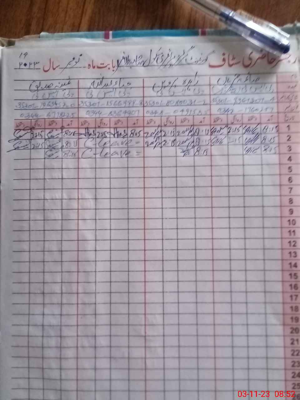 | CNIC | Full Name | Designation | R/C | Absence during last cal. month |
