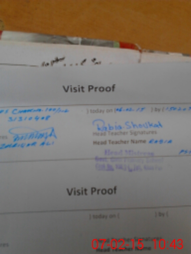 | Attendance Register | Head Teacher | MEA with School | Visit Proof |