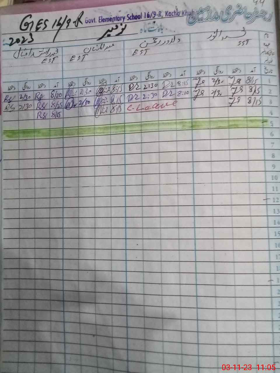 | CNIC | Full Name | Designation | R/C | Absence During Last Calender Month |