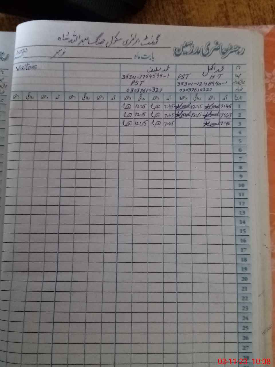 | Name: Mu**** Ak**** Designation: (School Headmaster's/Headmistress's) PST Phone/Cell Number: 03**** |