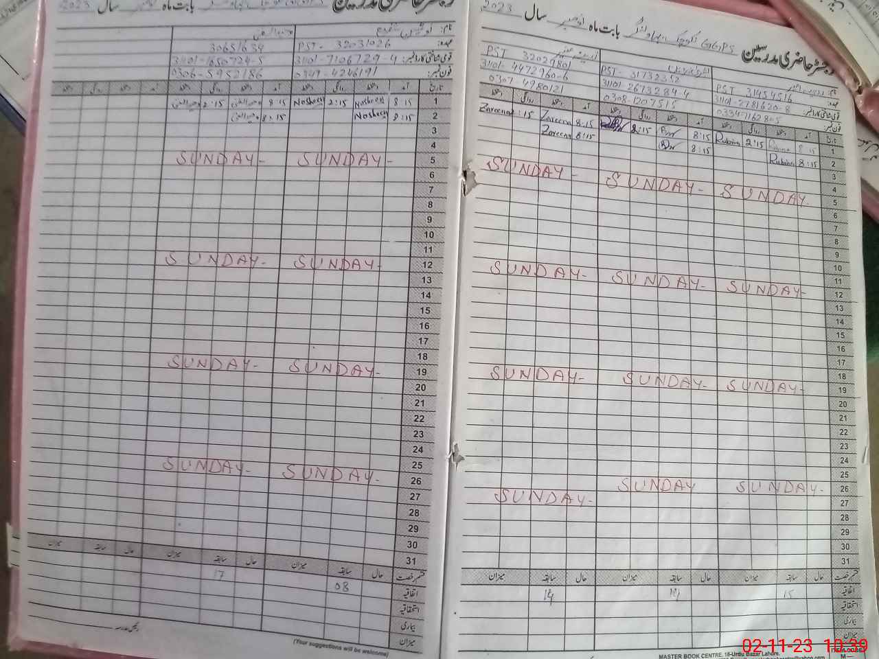 | CNIC | Full Name | Designation | R/C | Absence During Last Calender Month |