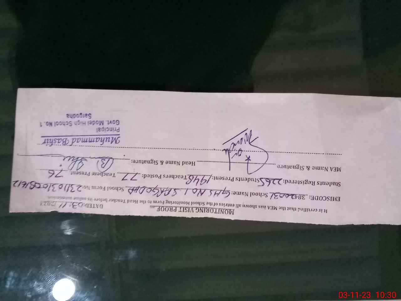| EMIS Code: 38420031 | Name of School: GHS MODEL NO.1 SARGODHA | |||