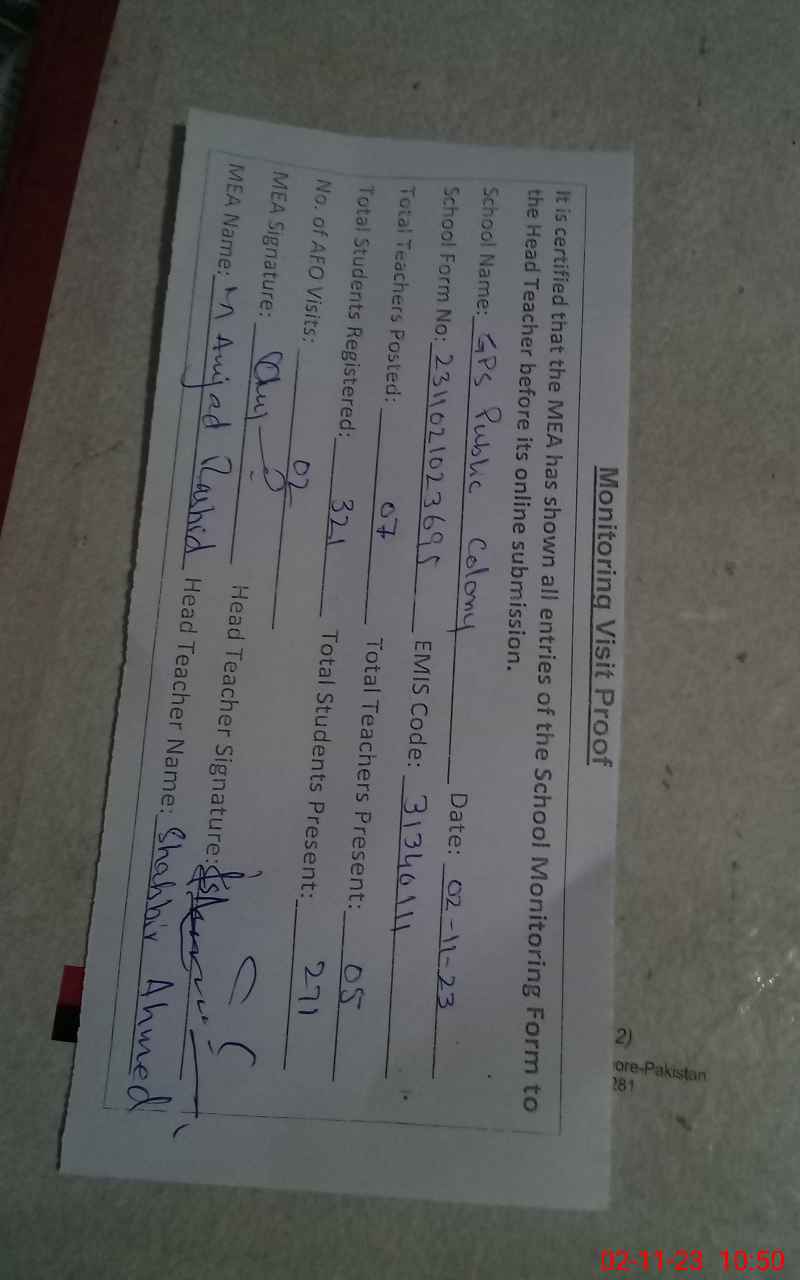 | EMIS Code: 31340111 | Name of School: GPS PUBLIC COLONY | |||