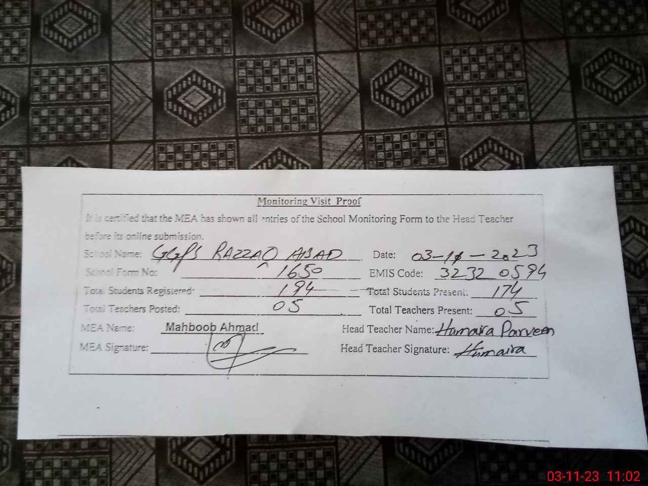 | EMIS Code: 32320594 | Name of School: GGPS RAZZAQ ABAD | |||