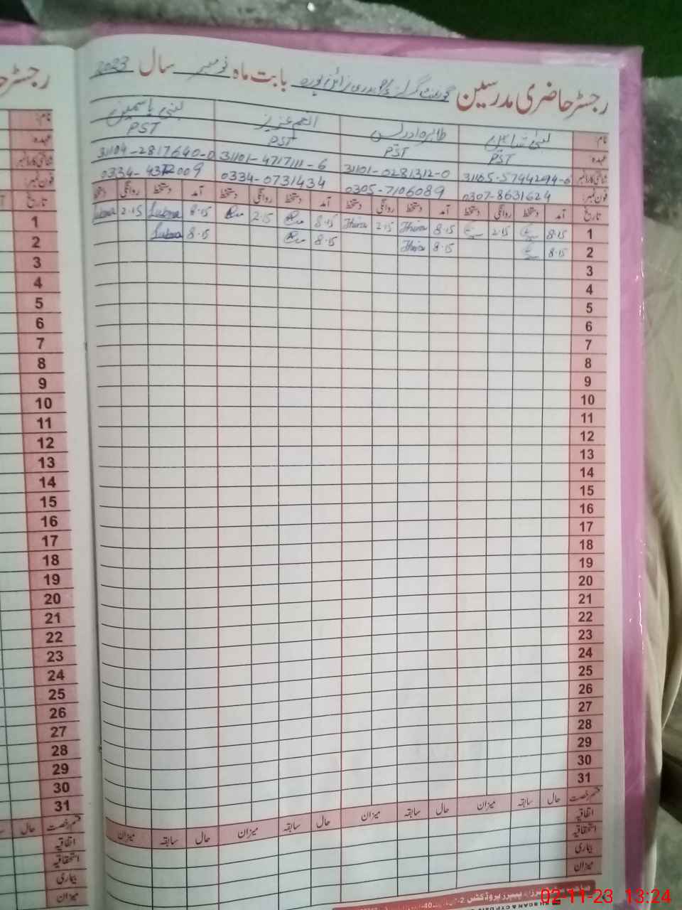 | Name: TA**** ID**** Designation: (School Headmaster's/Headmistress's) PST Phone/Cell Number: 03**** |