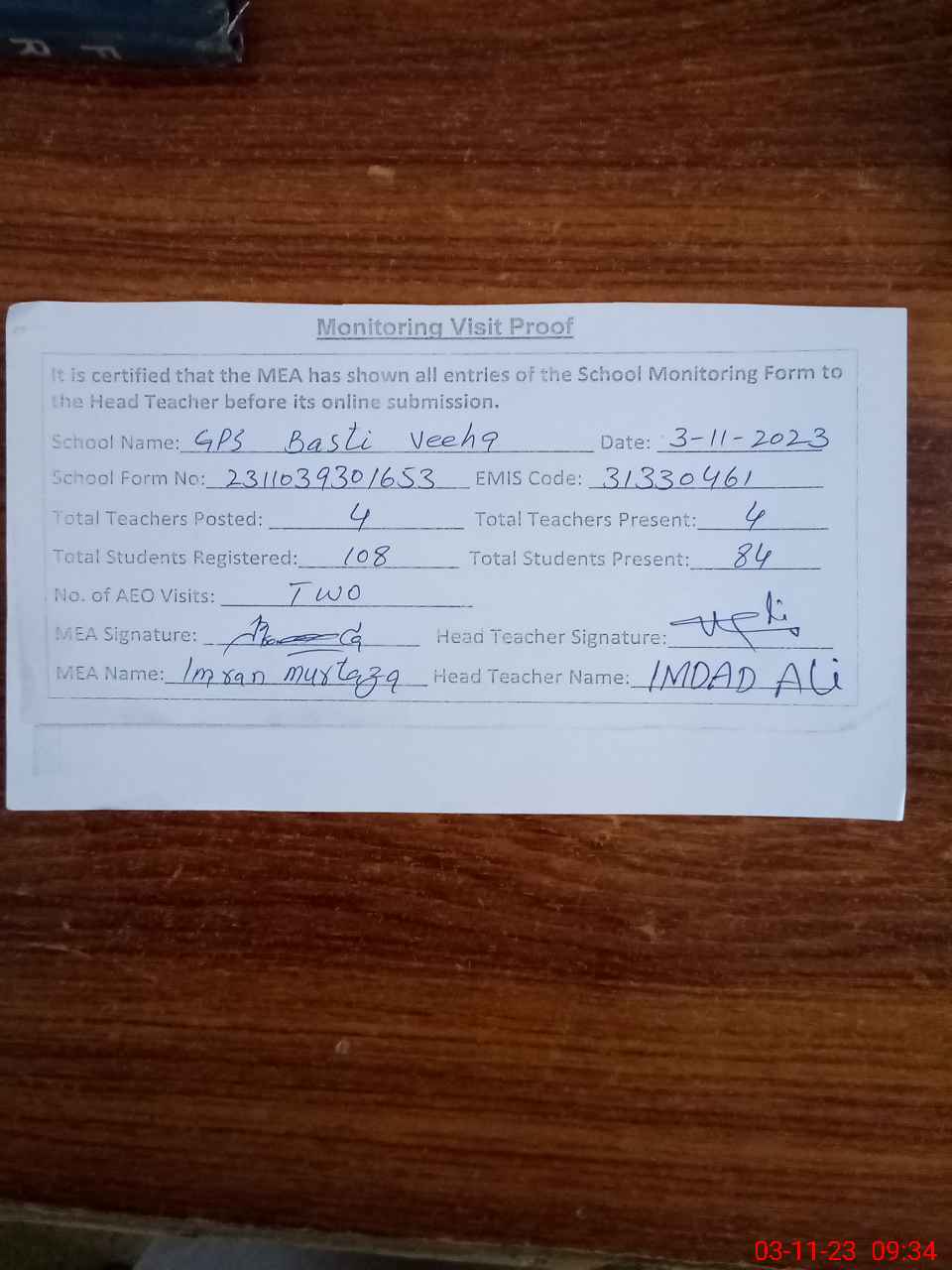 | EMIS Code: 31330461 | Name of School: GPS BASTI VEEHA | |||
