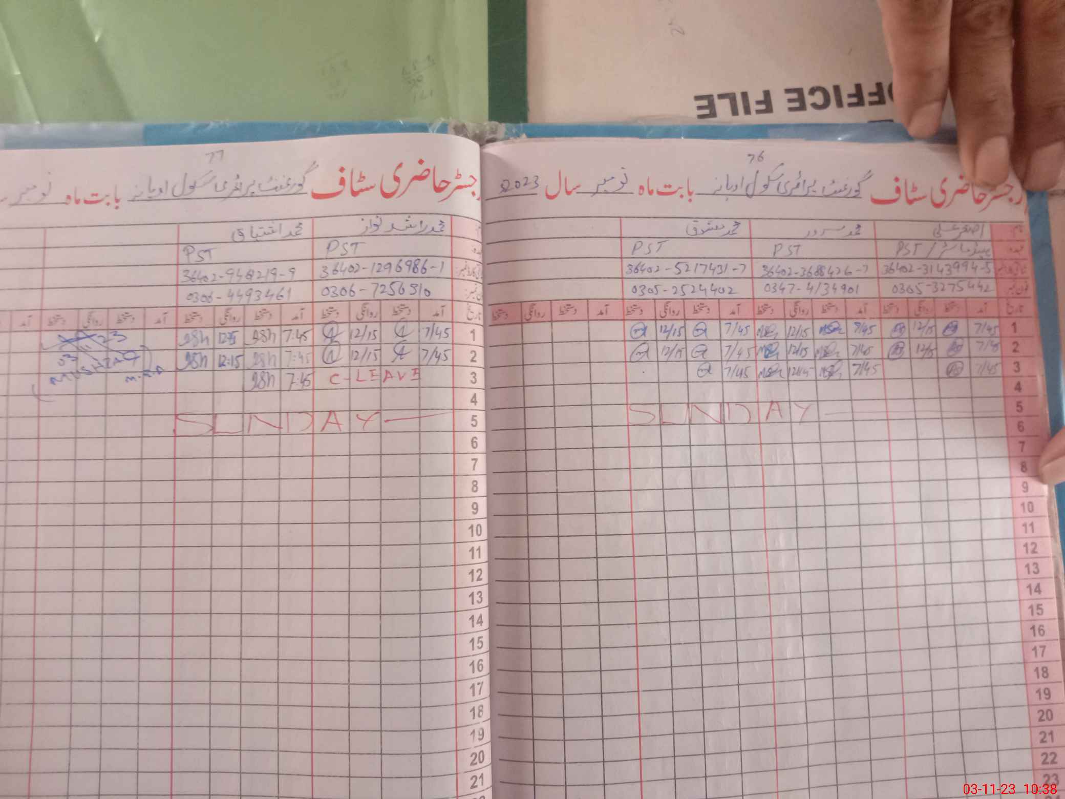 | Name: AS**** AL**** Designation: (School Headmaster's/Headmistress's) PST Phone/Cell Number: 03**** |