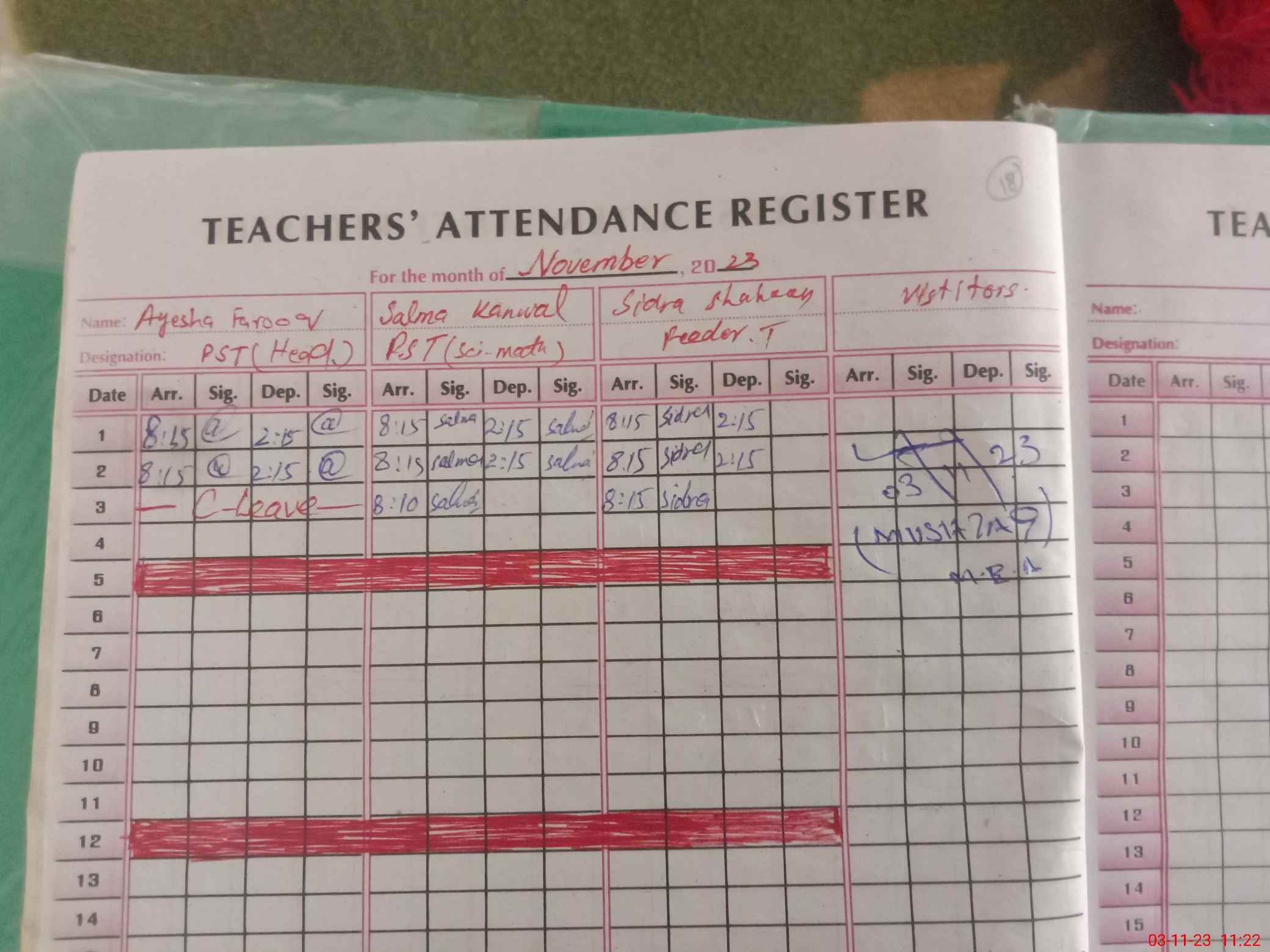 | CNIC | Full Name | Designation | R/C | Absence During Last Calender Month |