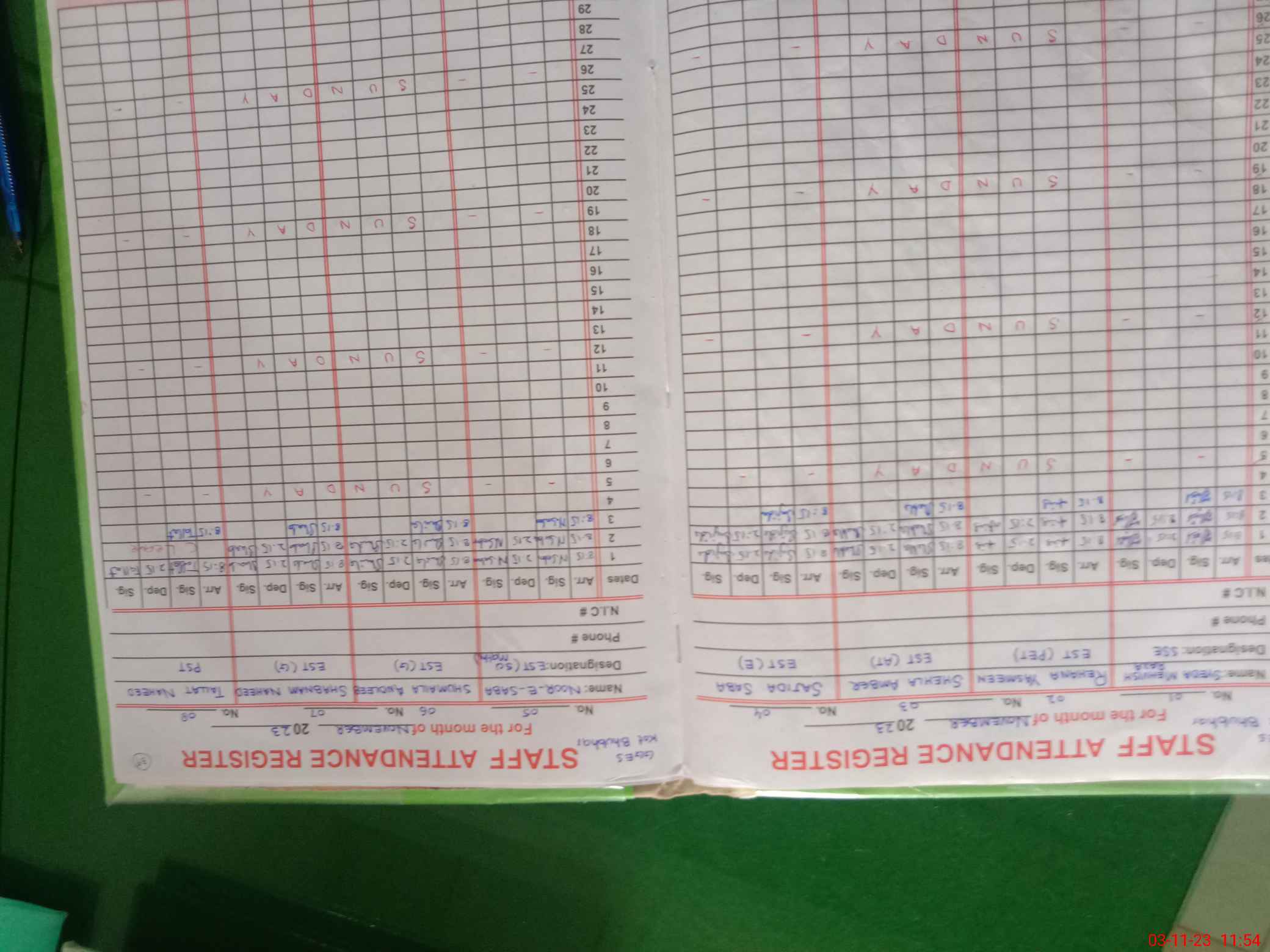 | CNIC | Full Name | Designation | R/C | Absence During Last Calender Month |