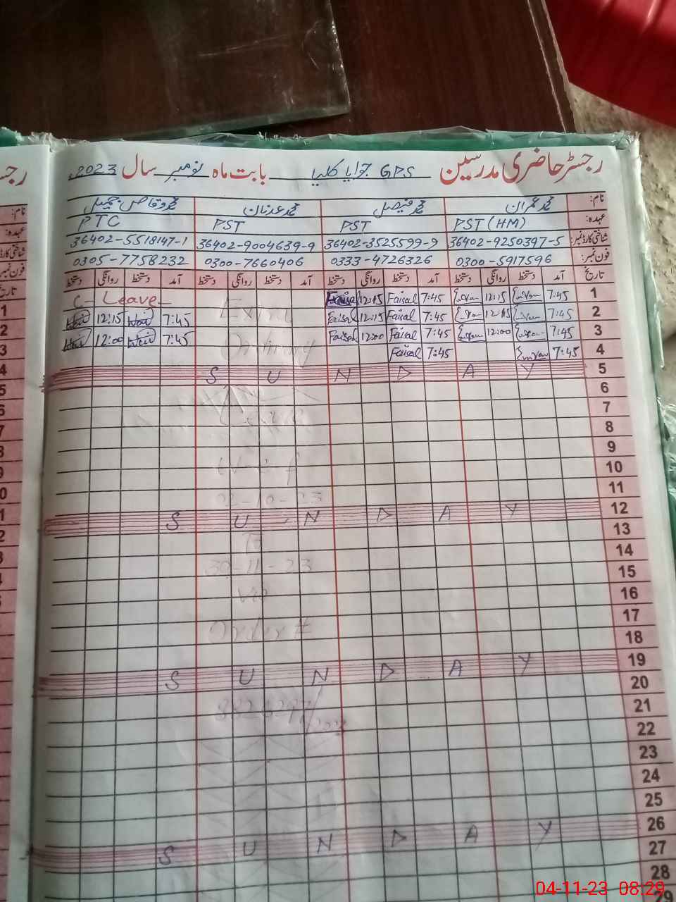| Name: MU**** Fa**** Designation: (School Headmaster's/Headmistress's) PST Phone/Cell Number: 03**** |