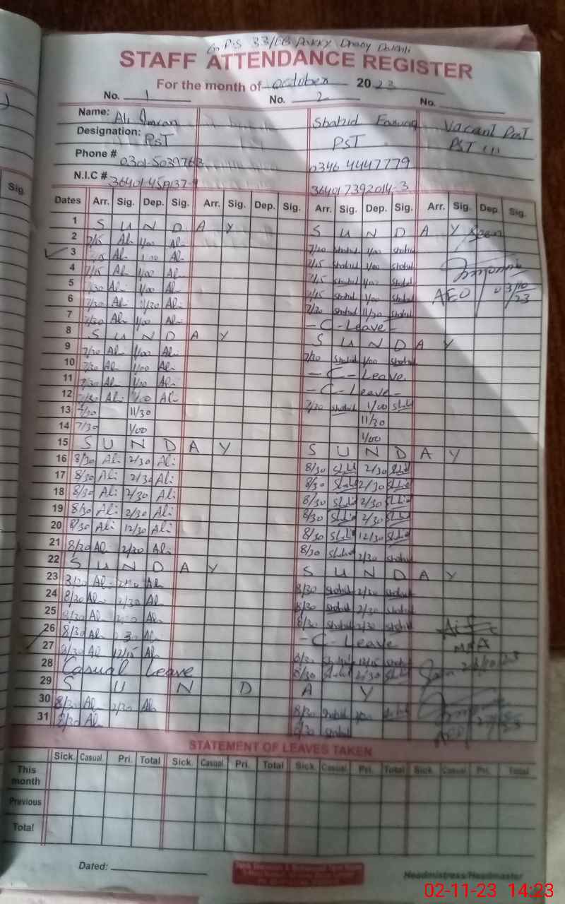 | Name: AL**** IM**** Designation: (School Headmaster's/Headmistress's) PST Phone/Cell Number: 03**** |