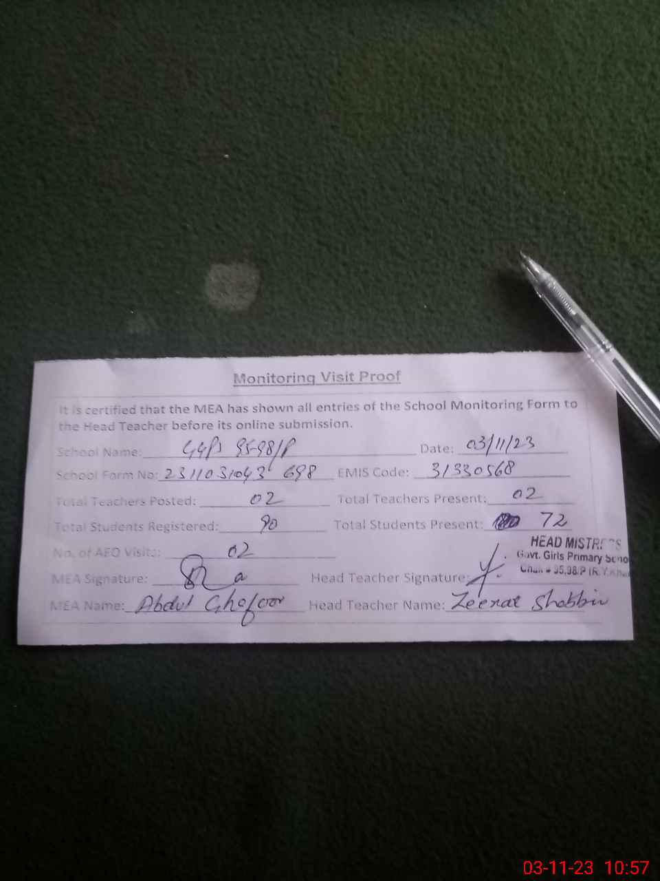 | EMIS Code: 31330568 | Name of School: GGPS CHAK 95-98/P | |||