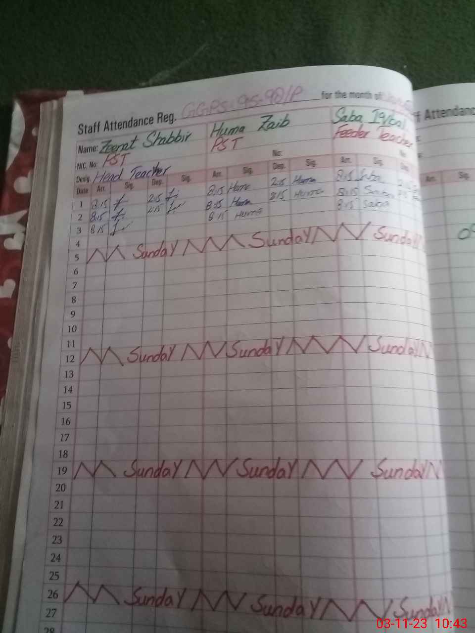 | Name: Ze**** Sh**** Designation: (School Headmaster's/Headmistress's) PST Phone/Cell Number: 03**** |