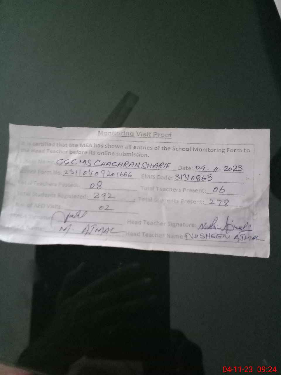 | EMIS Code: 31310863 | Name of School: GGCMS CHACHARAN SHARIF | |||