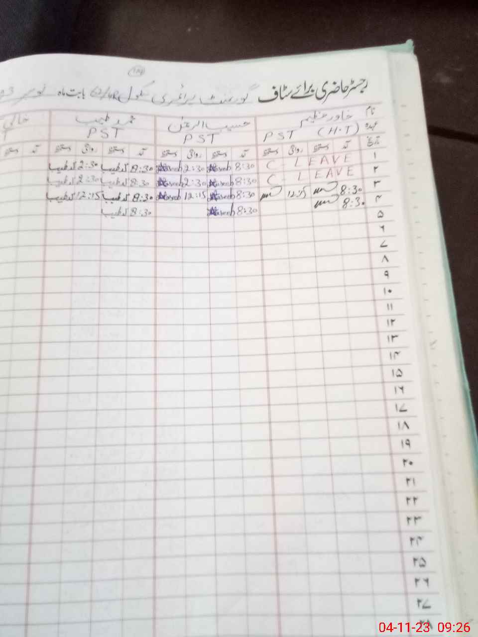 | Name: KH**** AZ**** Designation: (School Headmaster's/Headmistress's) PST Phone/Cell Number: 03**** |